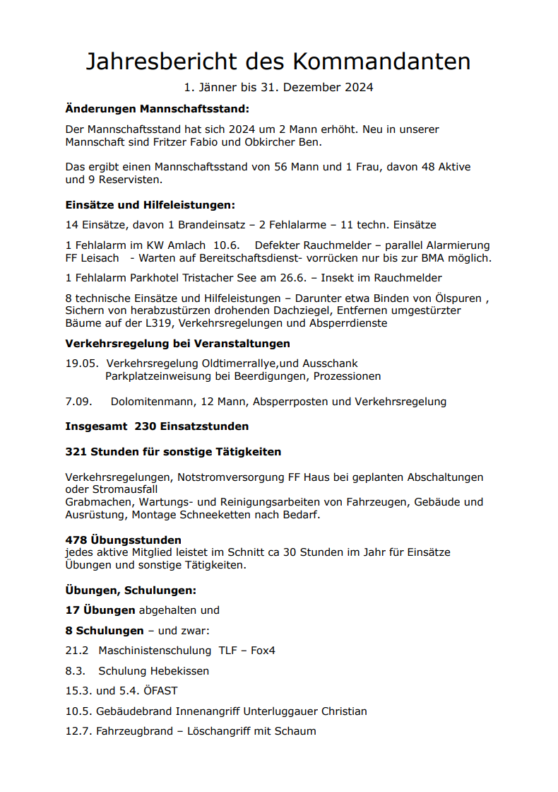 Der ausführliche Bericht zur Jahreshauptversammlung unserer Feuerwehr ist derzeit noch in Erstellung. Wir bitten um etwas Geduld, bis alle Details zusammengetragen und aufbereitet sind. Schon bald werden hier alle Informationen und Highlights der Versammlung wie gewohnt verfügbar sein.